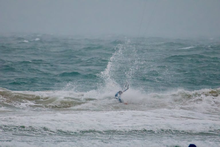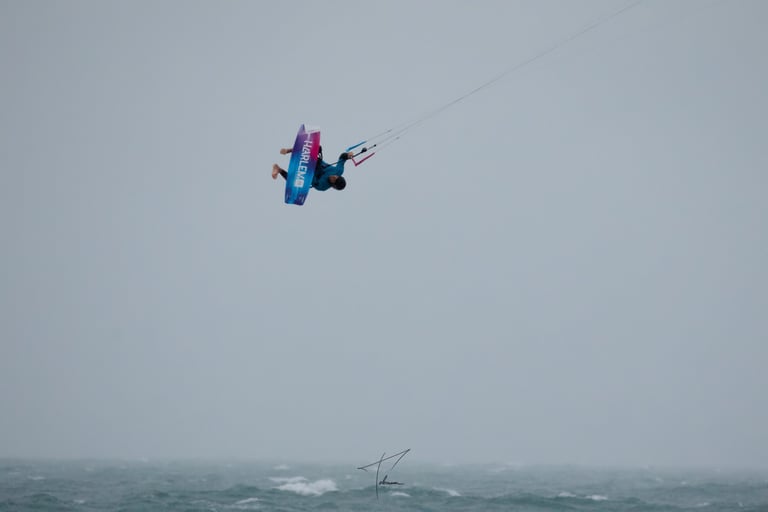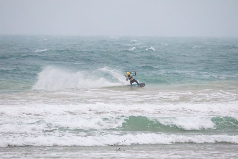 La 4ᵉ étape du Championnat de France kitesurf BIG AIR 2025 s'est tenu sur 2 jours, le 22 et 23 novembre à Vauville et Urville dans La Hague (50). Les conditions n'étaient pas terribles sous la pluie et le froid, mais il y avait suffisamment de vent. Voici certains de mes clichés pris aux côtés de Jérôme Houyvet lors de ces deux jours de compétition.